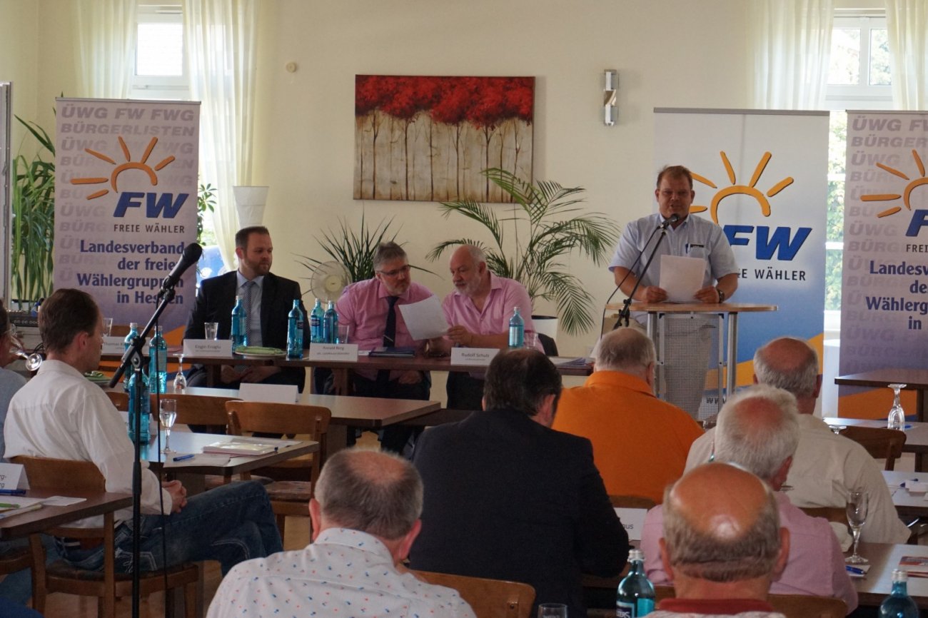 In seinem Bericht blickte Schulz auf die vergangenen zwei Jahre zurück. Es habe viele Konflikte gegeben aber auch sehr viele schöne Momente. Er unterstrich die gesteigerte Außenwahrnehmung der FWG Hessen. Mit der Landesgeschäftsstelle in Gießen sei eine täglich erreichbare Anlaufstelle für die Mitglieder des Landesverbands geschaffen worden. Der Landesverband müsse als Dienstleister für die Belange der Verbandsmitglieder verstanden werden. Schulz hob die gute Beziehung zwischen den Landesvorständen der FWG und der Partei FREIE WÄHLER Hessen hervor.
